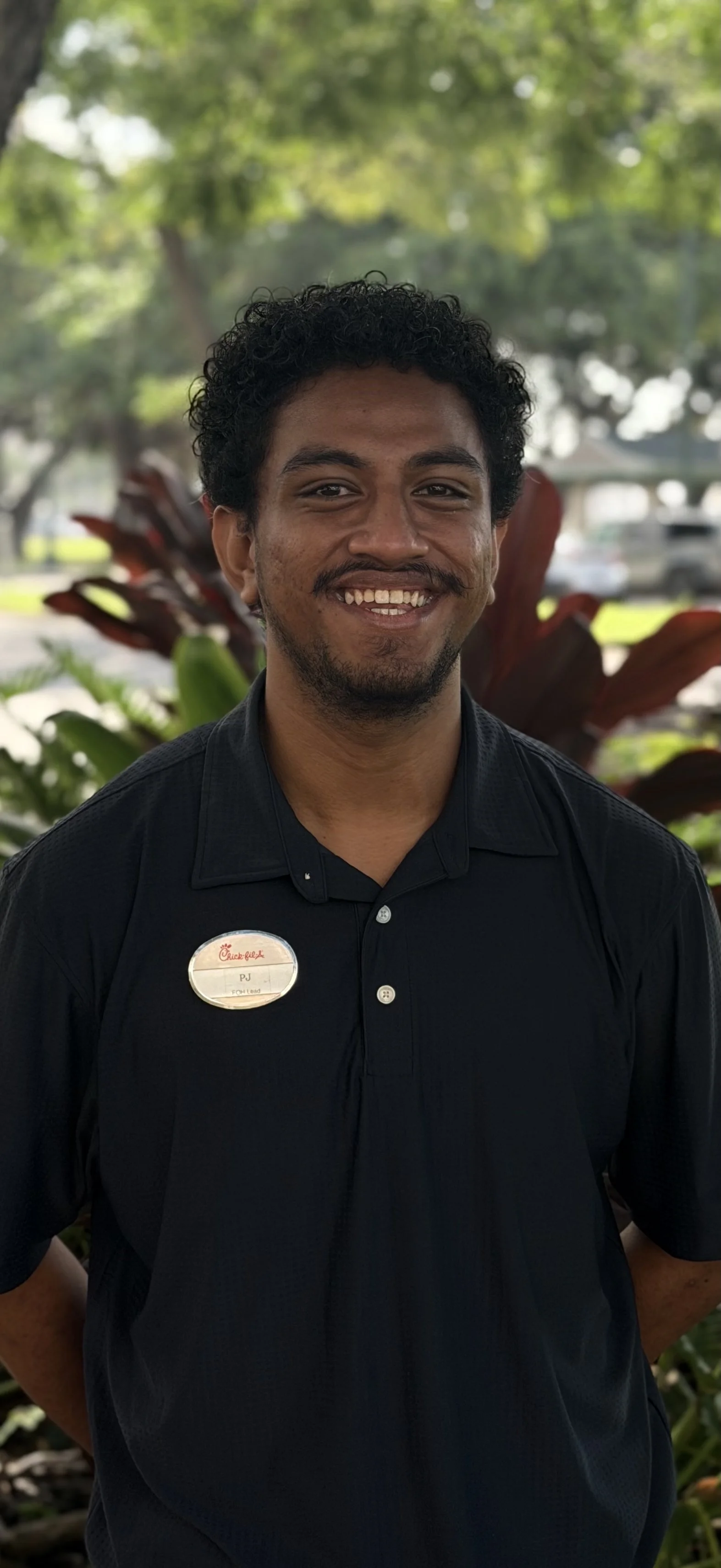 PJ started his Chick-fil-A journey in October 2022, just one week after the grand opening, and has steadily grown through the ranks to now serve as our Front of House Director. Born and raised on the island, PJ brings a strong sense of community and heart into everything he does.